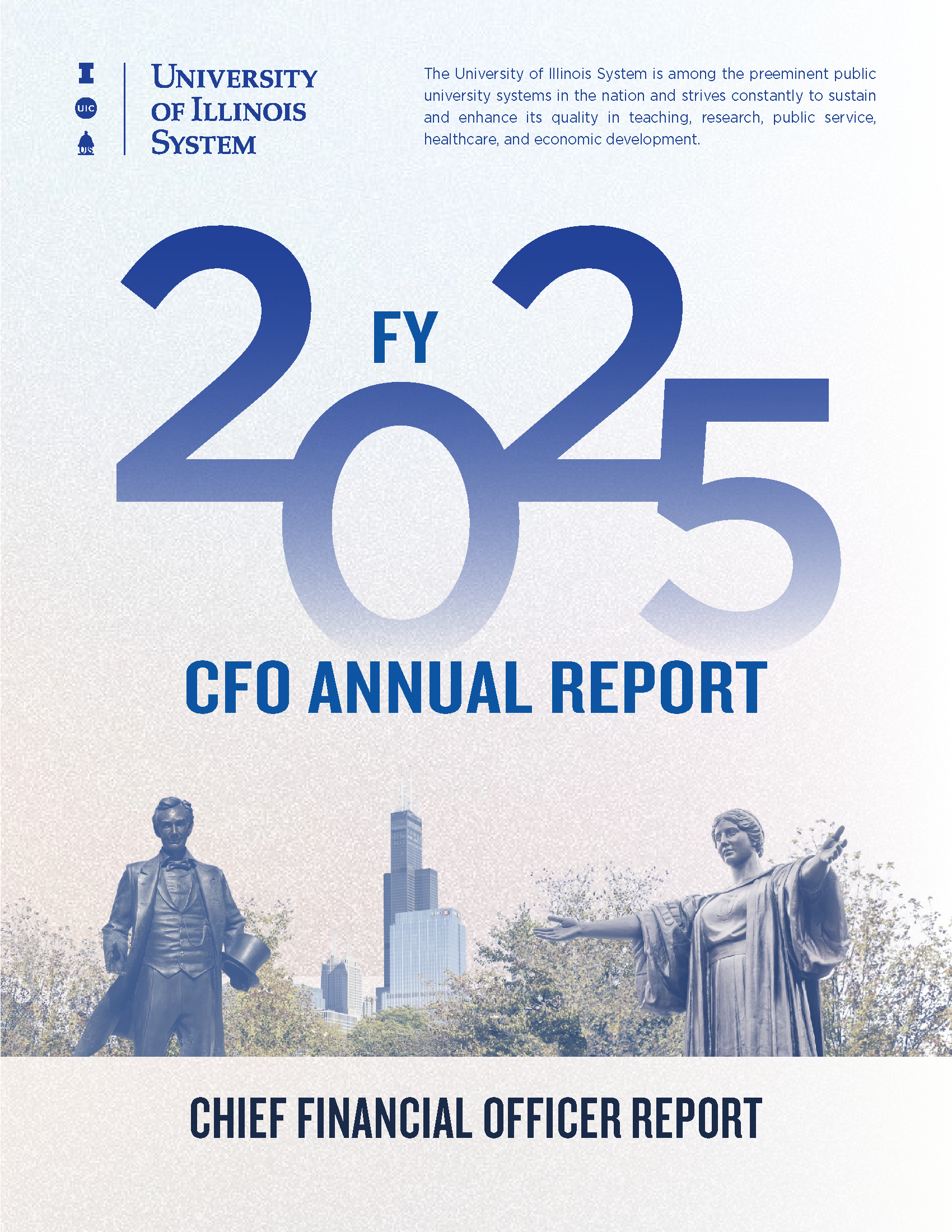 Welcome to the Chief Financial Officer's (CFO) Annual Report, a comprehensive overview of the organization’s goals and key accomplishments for the units operating under the CFO umbrella. From financial planning and risk management to fiscal innovation, each unit operates harmoniously to fortify the financial foundation of the University of Illinois System. Moreover, we invite you to explore the notable accomplishments achieved by both individual units and the CFO organization as a whole. These achievements underscore our commitment to excellence and reflect the collaborative spirit with each of the universities.